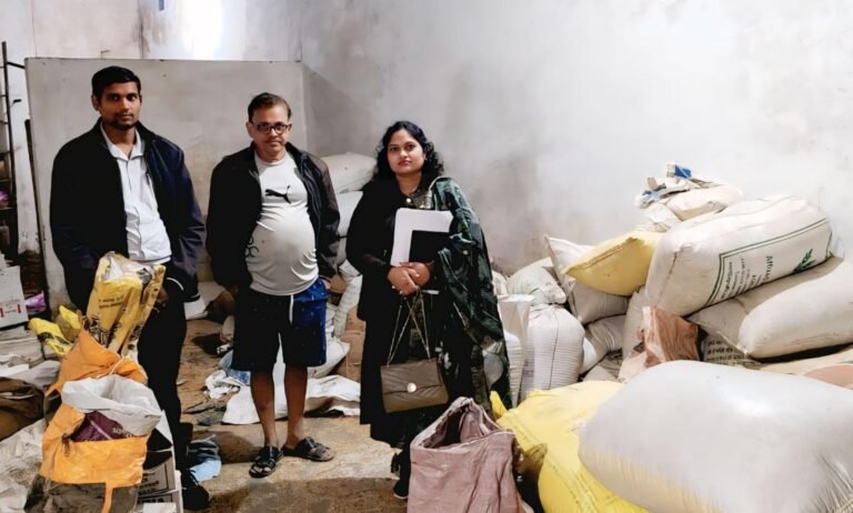 जांजगीर-चांपा 30 दिसम्बर 2025/ कलेक्टर जन्मेजय महोबे के निर्देशन में राजस्व विभाग एवं सहकारिता विभाग की संयुक्त टीम द्वारा ग्राम कटौद में अवैध धान भंडारण के विरुद्ध कार्रवाई की गई है। कार्रवाई के दौरान जांच टीम ने पहारु ट्रेडर्स के परिसर से 50 कट्टी तथा कश्यप ट्रेडर्स से 60 कट्टी, कुल 110 कट्टी धान का अवैध भंडारण पाए जाने पर मौके पर ही जब्ती की कार्रवाई की गई है। कलेक्टर श्री महोबे ने अधिकारियों को निर्देश दिए हैं कि समर्थन मूल्य पर धान खरीदी व्यवस्था को प्रभावित करने वाले किसी भी प्रकार के अवैध भंडारण, कोचिया-बिचौलिया गतिविधियों पर लगातार कार्रवाई की जाए। उन्होंने अधिकारियों को सतत निगरानी, आकस्मिक निरीक्षण तथा कार्रवाई जारी रखने के निर्देश दिए हैं।