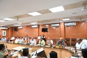 जांजगीर-चांपा 25 जून 2025/ कलेक्टर श्री जन्मेजय महोबे की अध्यक्षता में खरीफ वर्ष 2025 के कार्यक्रम निर्धारण हेतु जिला जल उपयोगिता समिति की बैठक कलेक्टोरेट कार्यालय के सभाकक्ष में संपन्न हुई। बैठक में जांजगीर-चांपा विधायक श, पामगढ़ विधायक श्रीमती शेषराज हरबंश, जिला पंचायत उपाध्यक्ष श्री गगन जयपुरिया, श्री राघवेन्द्र प्रताप सिंह, अन्य जनप्रतिनिधि, कृषक संगठन के सदस्य, कृषकगण सहित संबंधित विभाग के अधिकारी-कर्मचारी उपस्थित थे।