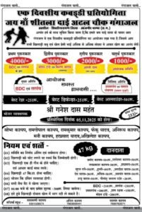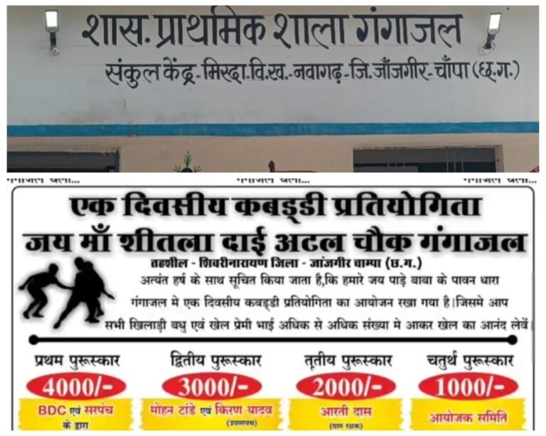 जांजगीर चाम्पा :- जांजगीर चांपा जिला अंतर्गत विकासखंड नवागढ़ के ग्राम पंचायत गंगाजल में एक दिवसीय कबड्डी प्रतियोगिता का आयोजन 5 नवंबर को किया जाएगा,जिसमें 47 किलोग्राम वजन वाले युवक ही भाग ले सकते हैं